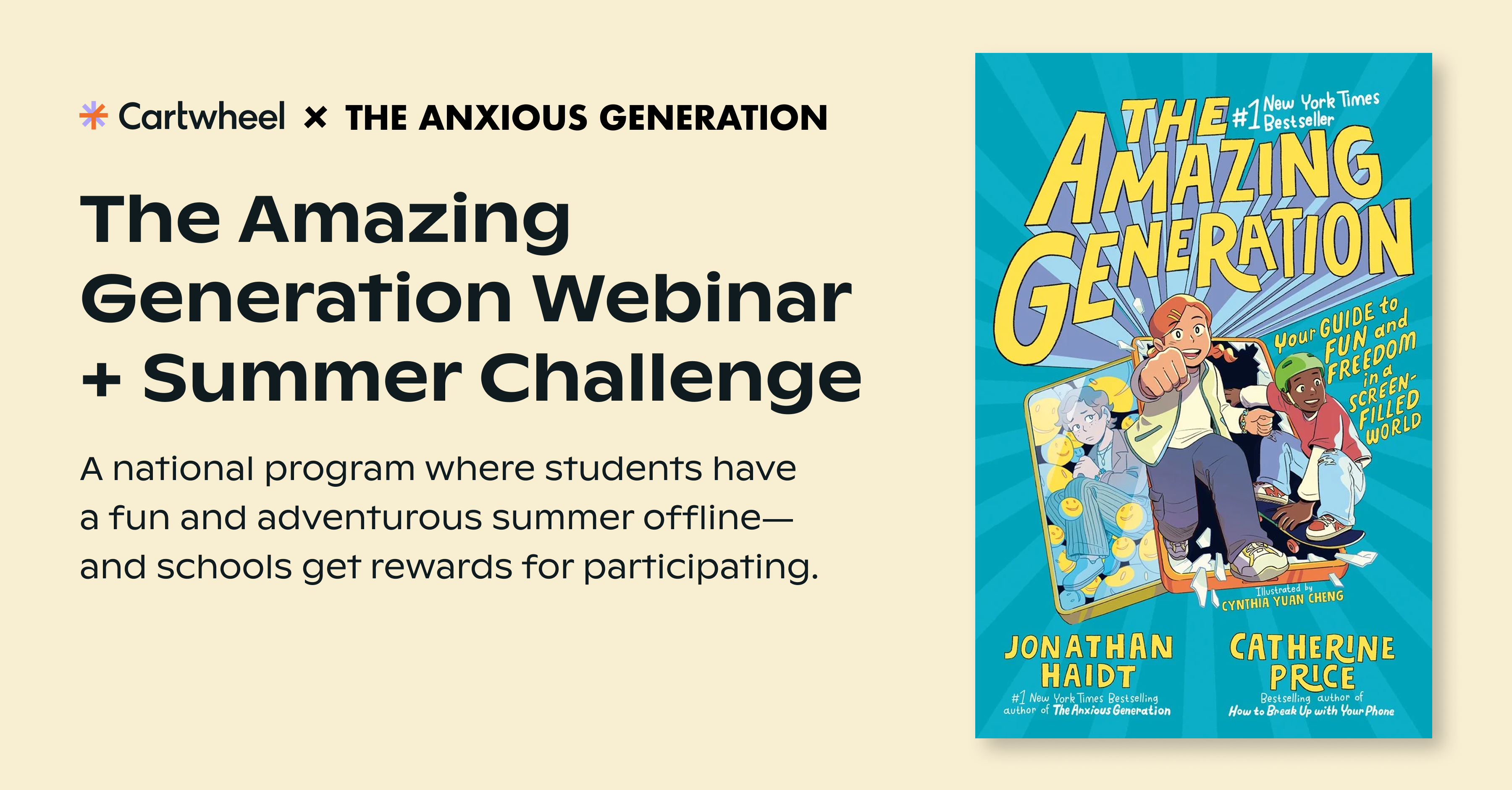 Cartwheel is partnering with The Anxious Generation — the organization behind Jonathan Haidt's #1 New York Times bestselling book — on a national summer reading challenge designed for students. It's called The Amazing Generation Summer Challenge, and I'm excited about what it could mean for the students and families in your district.