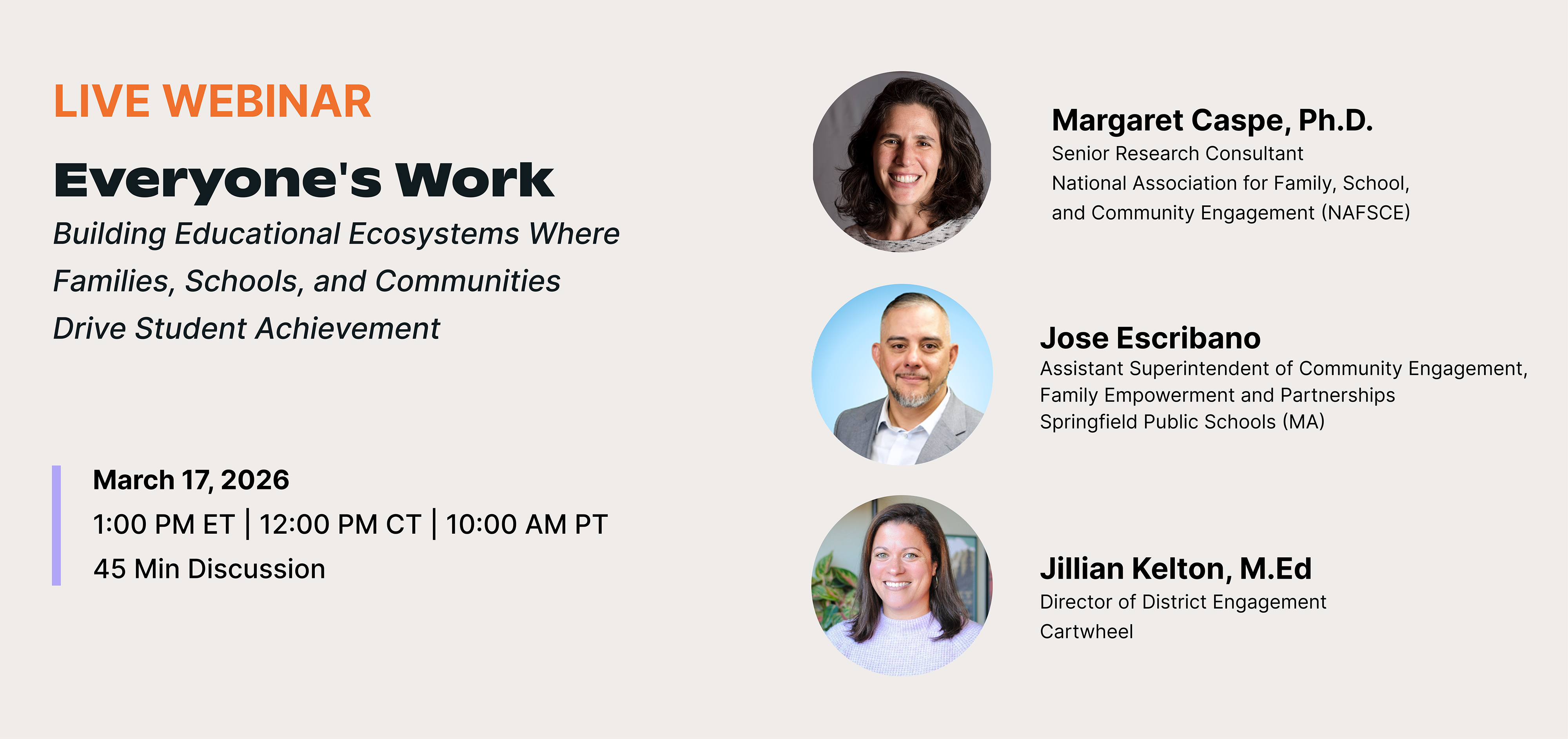Key takeaways from discussion with NAFSCE, Springfield Public Schools (MA) and Cartwheel sharing research and real-world strategies for building authentic family-school partnerships that improve attendance, behavior, and academic achievement.